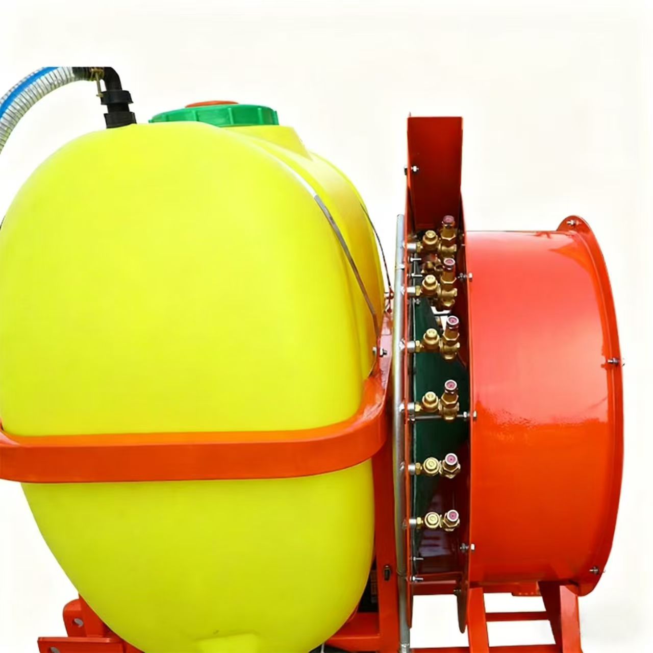 1. Pam tekanan tinggi memastikan tekanan cecair yang mencukupi untuk menyampaikan racun perosak atau baja secara merata, sementara sistem kipas menghasilkan aliran udara yang kuat untuk membawa kabut cecair ke setiap bahagian pokok buah-buahan, termasuk kanopi padat.