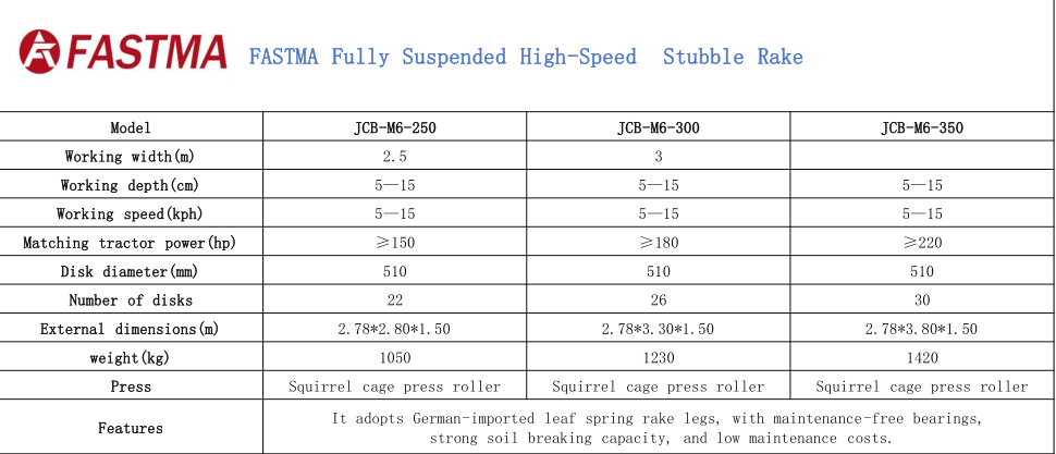 Garu pemusnah tunggul tugas berat FASTMA®, dengan rangka yang teguh dan cakera tajam, menghancurkan sisa tanaman dengan cekap dan meresap jauh ke dalam tanah. Disokong oleh pengalaman bertahun-tahun dalam pembuatan jentera pertanian, yang mempunyai kawalan kualiti yang ketat, memastikan ketahanan dan kebolehpercayaan untuk pelbagai aplikasi.