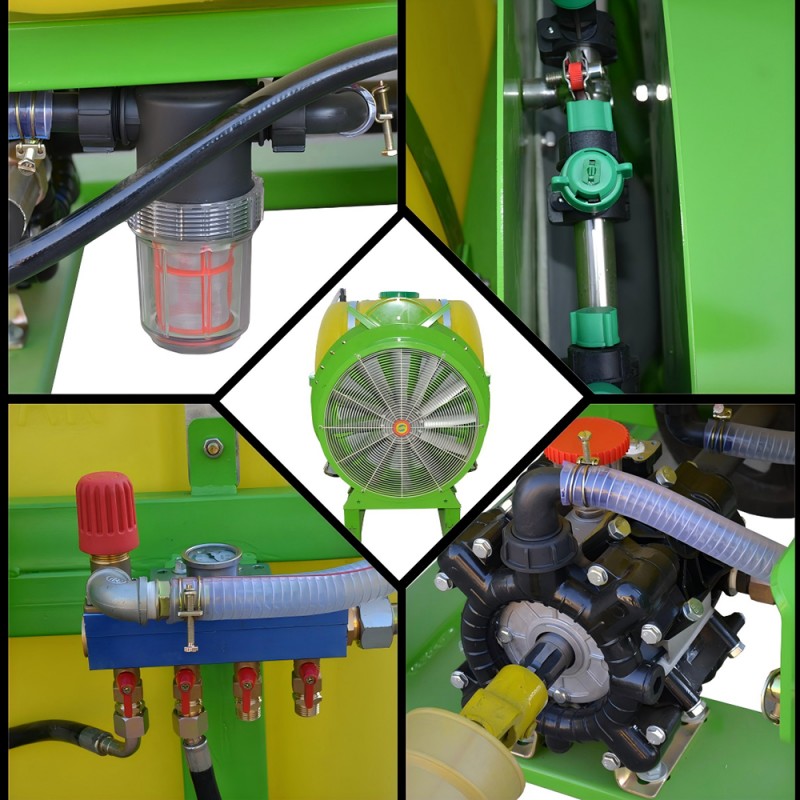 Ketahanan adalah terasnya, dengan bahagian-bahagian utama yang dibina untuk menahan keadaan pertanian yang keras: tangki 200L-500L dibuat dari polietilena berkepadatan tinggi, menentang kakisan dari racun perosak dan baja; Aci PTO mempunyai keluli aloi yang dirawat haba untuk prestasi anti-wear dan penghantaran kuasa lancar; Dan ledakan semburan menggunakan aloi aluminium -kemerahan namun kuat, dengan lebar laras agar sesuai dengan spacings baris tanaman yang berbeza. Semua muncung diperbuat daripada seramik tahan haus, memastikan corak semburan yang tahan lama dan seragam tanpa menyumbat.