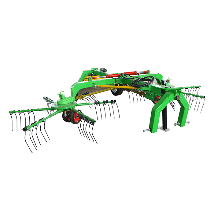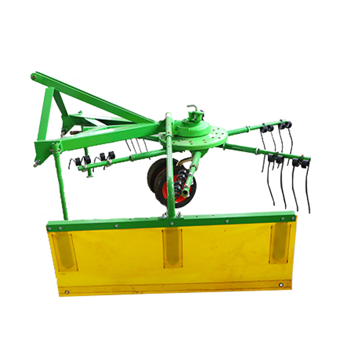 Dalam pengeluaran pertanian, rake roda roda berputar adalah alat yang serba boleh. Fungsi utamanya adalah untuk mengumpul jerami dan meraih rumput yang dituai ke dalam jalur yang kemas untuk mudah, pemuatan dan penyimpanan. Ia juga boleh menyikat jerami dan memberi makan terus ke ternakan tanpa membuang ruang. Di kebun, ia boleh membersihkan semua daun dan rumpai yang jatuh di atas tanah, mengurangkan perosak dan penyakit di sumbernya. Sekiranya terdapat jerami, daun dan serpihan cahaya yang lain di jalan dan meter, ia cepat dan menjimatkan buruh untuk membersihkannya, menjimatkan banyak buruh dan masa.