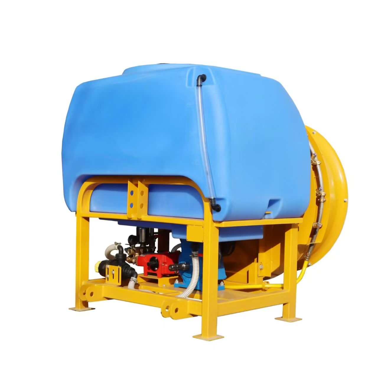 -Tangki & Penghantaran: Termasuk tangki plastik anti-karat 300-1000L dan sistem saluran paip tekanan tinggi dengan muncung tembaga, menyokong kawalan aliran yang tepat (0.3-2L/min setiap muncung) melalui pam berkuasa traktor.