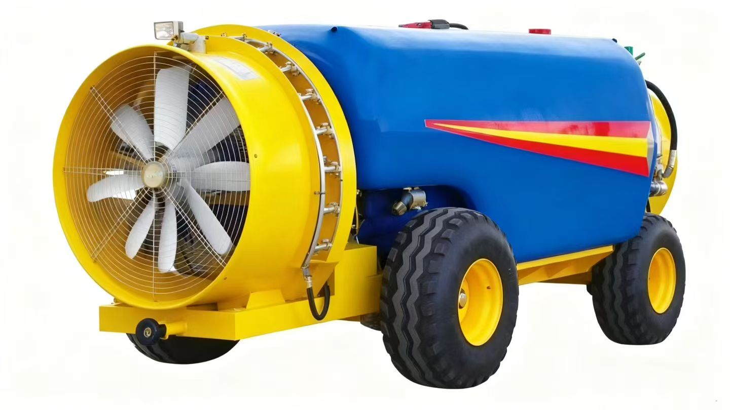 Pada terasnya adalah kipas sentrifugal yang tinggi yang menghasilkan aliran udara seragam yang kuat, dipasangkan dengan muncung tembaga laras 8-12. Gabungan ini memastikan titisan digerakkan secara merata, menembusi kanopi tanaman padat untuk menutupi permukaan daun atas dan bawah -menginisikan sisa kimia dan meningkatkan kecekapan kawalan perosak/penyakit. Pam diafragma tekanan tinggi mengekalkan tekanan yang stabil, sementara pengawal selia tekanan membolehkan pengguna tweak output berdasarkan jenis tanaman.