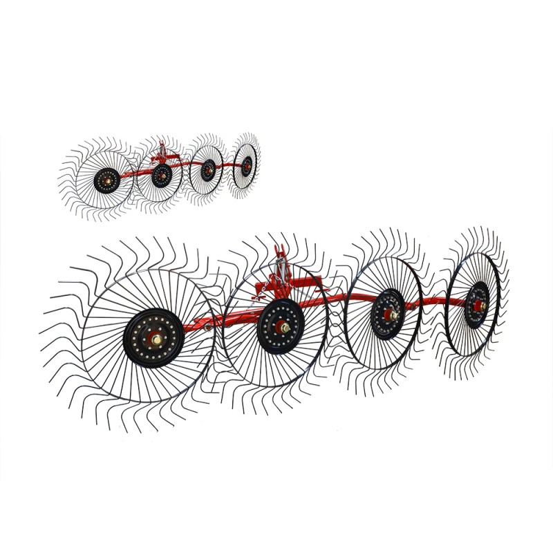 Rake roda roda ini mempunyai gigi meraih keluli tahan lama dan galas yang dimeteraikan. Kefahaman meningkat sehingga 40%. Reka bentuk larasnya sesuai untuk pelbagai tanaman.