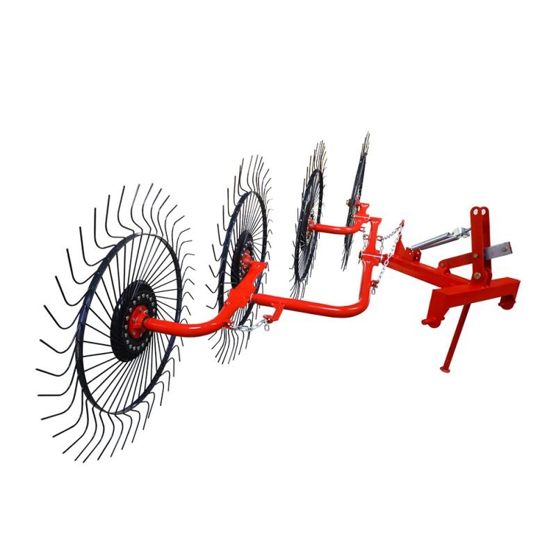 Rake jerami beroda mempunyai salutan tahan cuaca di luarnya. Ia boleh menghalang karat yang disebabkan oleh hujan dan embe.its reka bentuk pelepasan cepat memastikan kemudahan pemasangan dan pembongkaran, dengan itu menjimatkan pengendali masa yang berharga.
